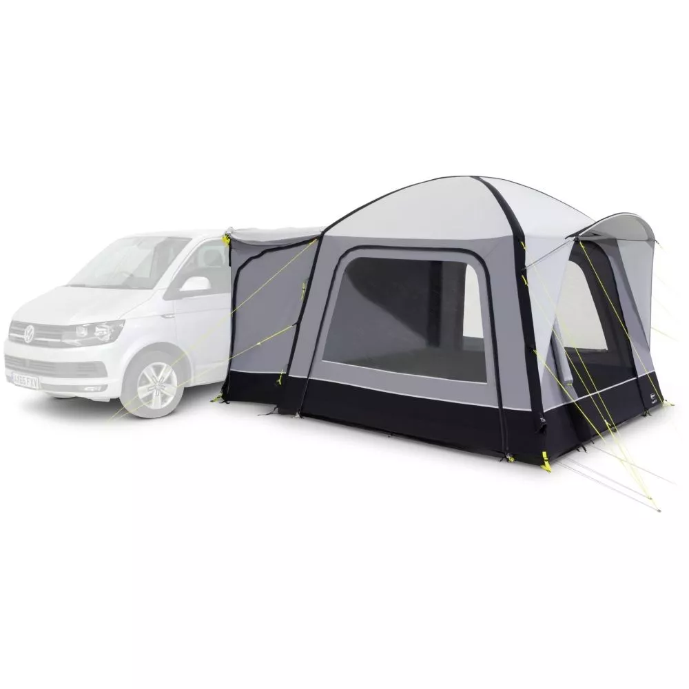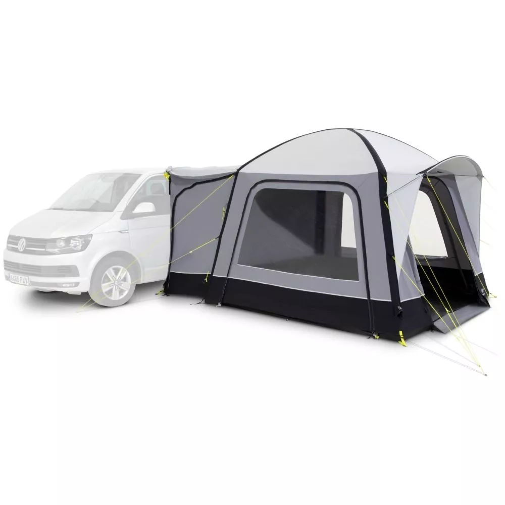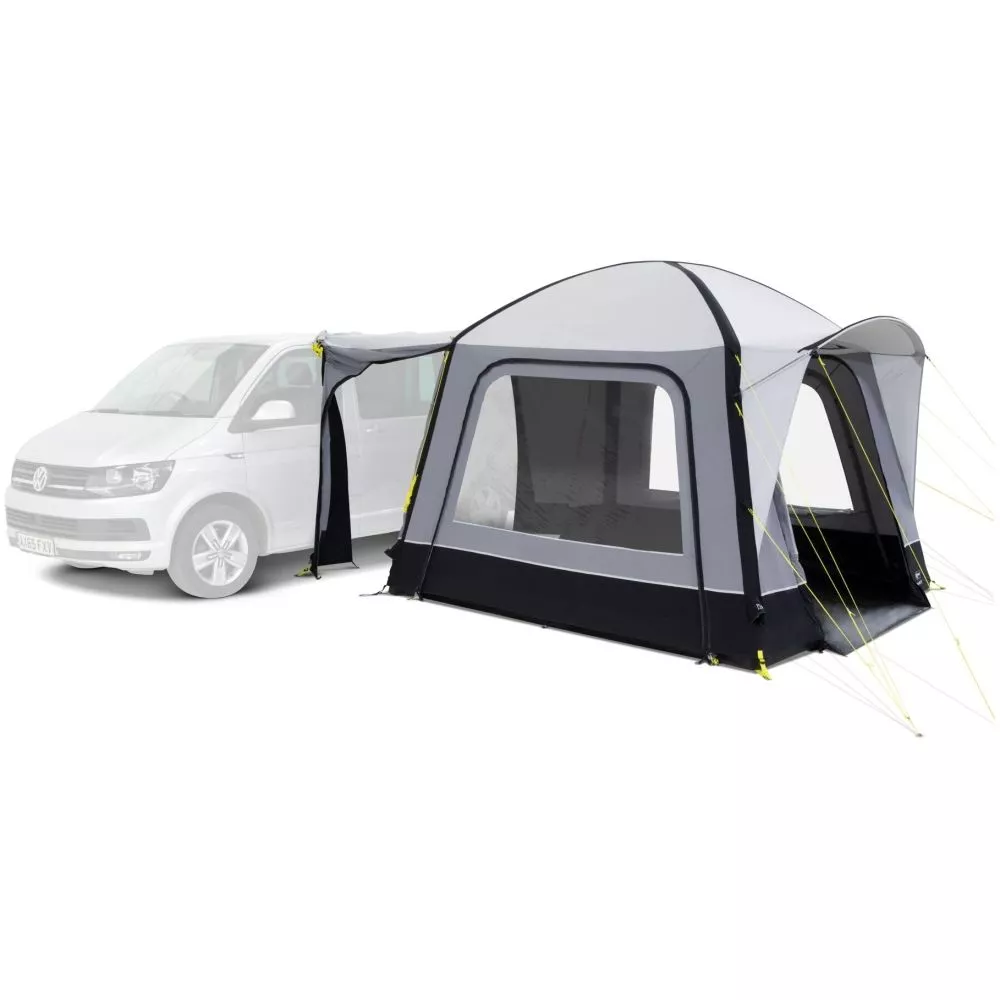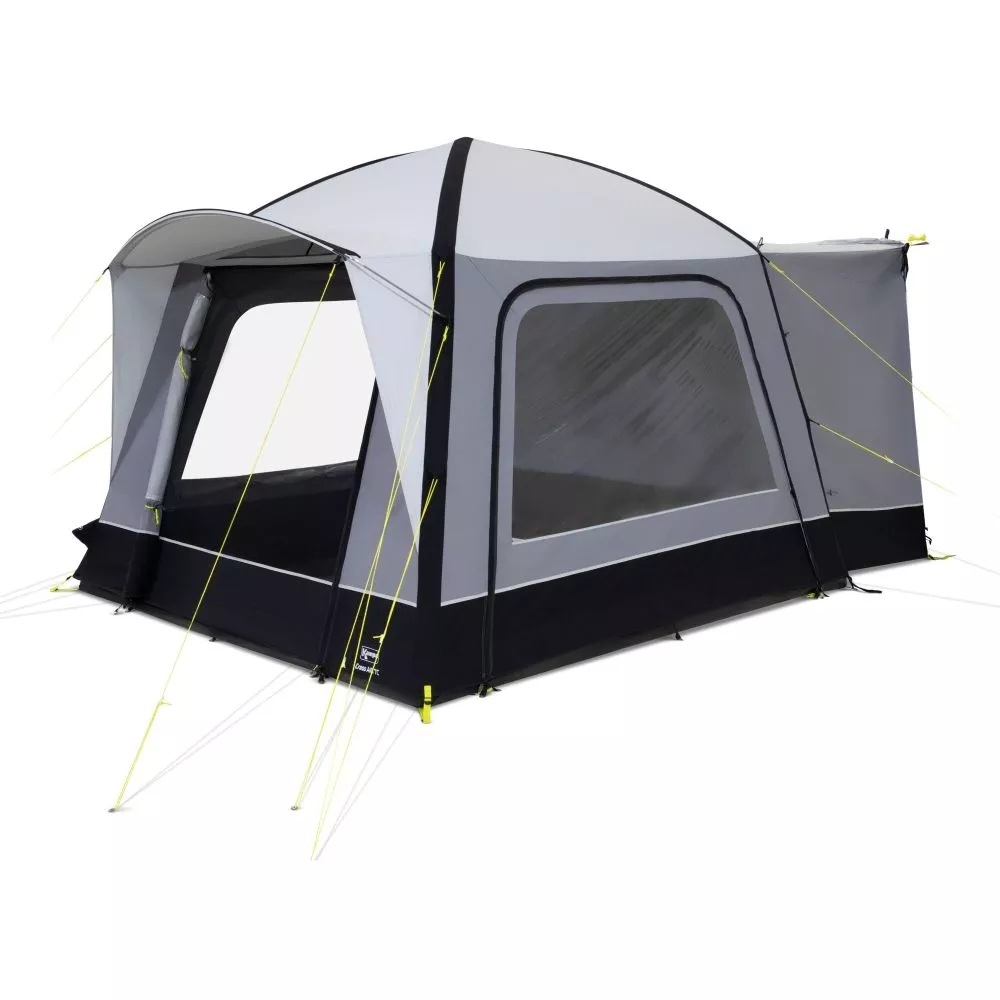 Du bist auf der Suche nach einem praktischen und geräumigen Vorzelt für deinen Campingbus? Dann bist du mit dem freistehenden und aufblasbaren Kampa Cross Air TC Busvorzelt bestens für den nächsten Urlaub mit deiner Familie gerüstet. Denn es passt dank der Anschlusshöhe von 180 – 210 cm ideal an deinen Bus und bietet dir mit 9 m² einen geräumigen Wohnraum vor deinem Camper. Dank der freistehenden Konstruktion kannst du jederzeit die Kederverbindung über das separat erhältliche Driveaway-Kit lösen, um einen Ausflug mit dem Fahrzeug zu machen. Die Vorhänge schützen die Campingausrüstung während deiner Abwesenheit vor neugierigen Blicken und bieten während dem Aufenthalt im Innenraum zugleich mehr Privatsphäre.