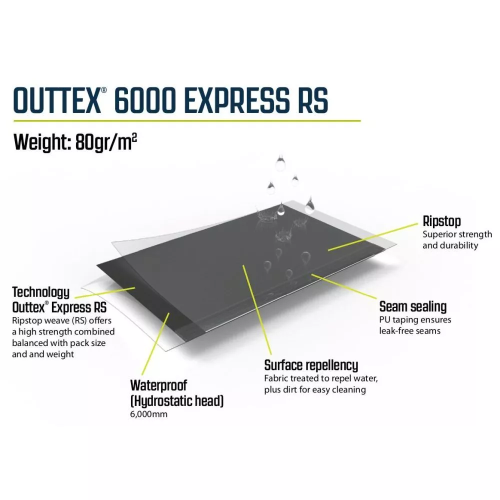 Überzelt: Outtex 6000 Express RS, 100% Polyester / PU-Beschichtung mit Wassersäule: 6.000 mm