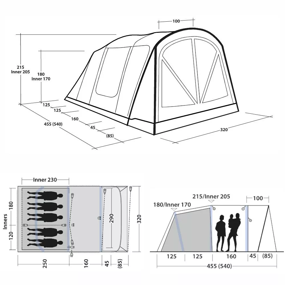320 x 540 x 215 cm (BxTxH)