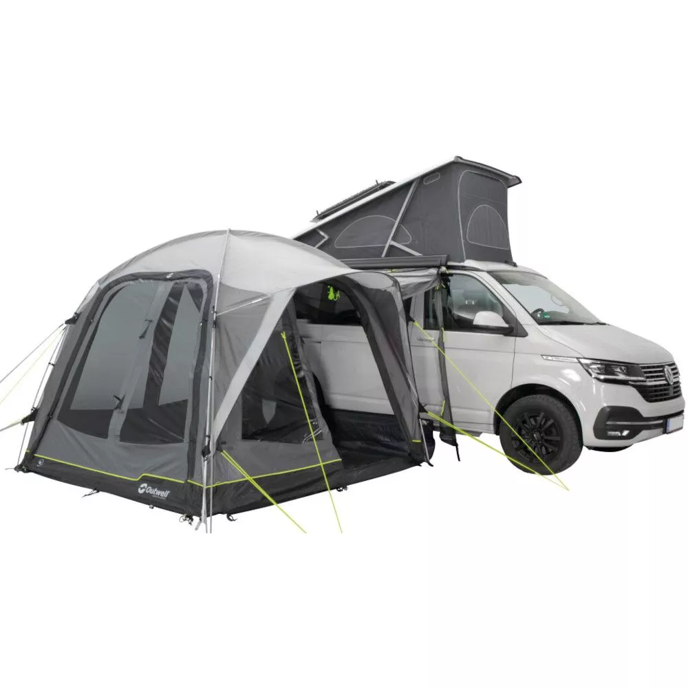Das Busvorzelt Outwell Milestone Lux mit Duratec-Fiberglas-Gestänge eignet sich bestens für kleinere Campingplätze und bietet mit über 5 Quadratmetern Wohnraum dennoch ausreichend zusätzlichen Platz. Es besticht mit seiner klassischen Kuppelform. Die graue Farbestaltung mit hellem Dach ist elegant und zeitlos.