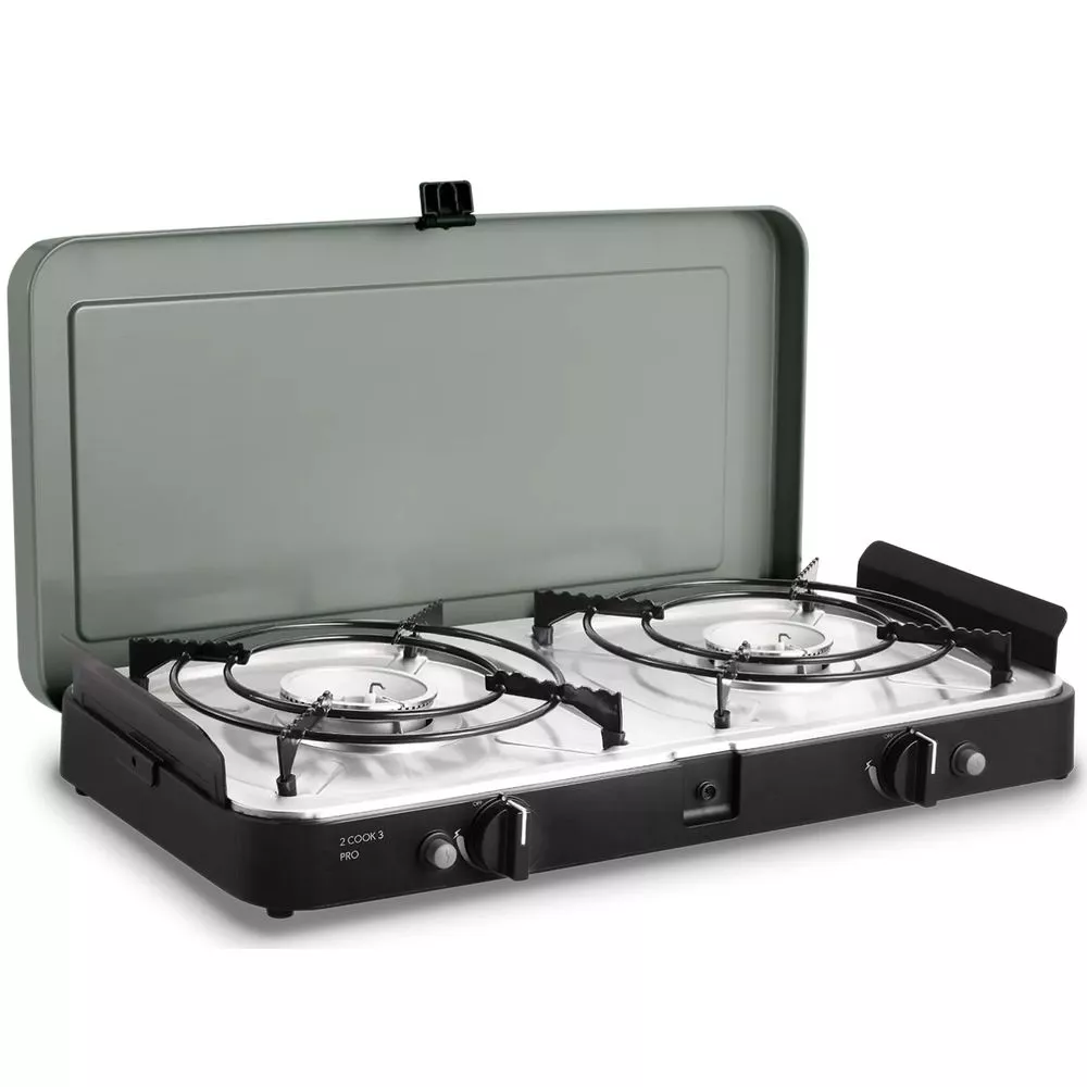 Entdecke die Freiheit des Kochens unter freiem Himmel mit dem 2 Cook 3 Pro Stove von Cadac Dometic. Der tragbare Gaskocher bietet dir zwei unabhängige Kochsteiten, die dank der Piezozündung einfach und sicher gezündet werden können.