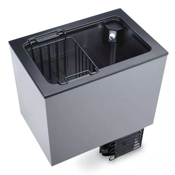 Die für beengte Raumverhältnisse konzipierte Dometic CoolMatic CB 40 für Normal- und Tiefkühlung nutzt den zur Verfügung stehenden Raum perfekt aus. Durch ihr Format fügt sie sich massgeschneidert in die Mini-Bordküche ein und kann mit dem Dekor der Einrichtung kombiniert werden. Das System besteht aus einem vollthermischer Kompressor für kombinierten 12/24 Volt-Anschluss mit automatischer Umschaltung, integriertem Unterspannungsschutz und elektronischem Verpolungsschutz. Das Kühlaggregat der CoolMatic CB 40 befindet sich unter der Box. Das Aggregat ist abnehmbar und kann in einer Entfernung bis zu 1,5 m montiert werden. Durch die geschickte Anordnung der kältetechnischen Komponenten ergeben sich 40 Liter Volumen und eine Stehhöhe für 2-Liter-Flaschen.