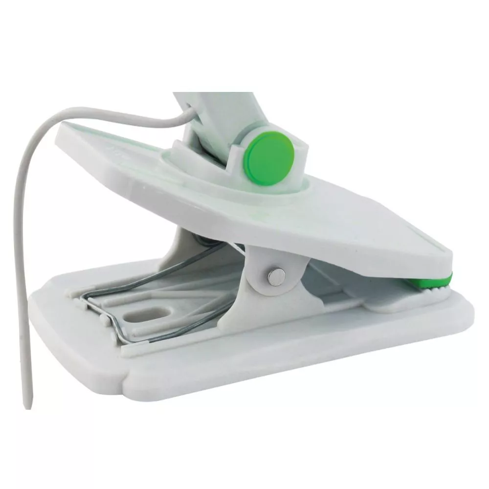 - kann mit der Klammer im schwenkbaren Fuss an einem Gestänge befestigt werden