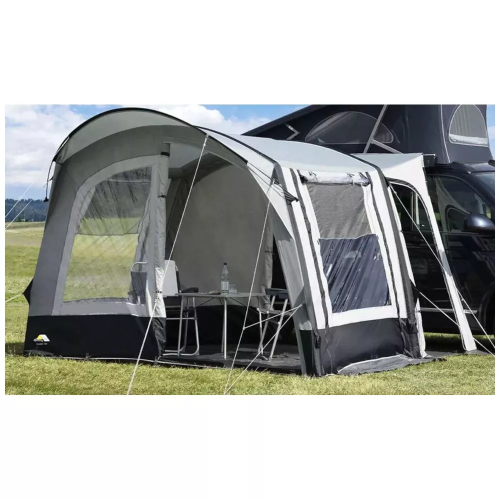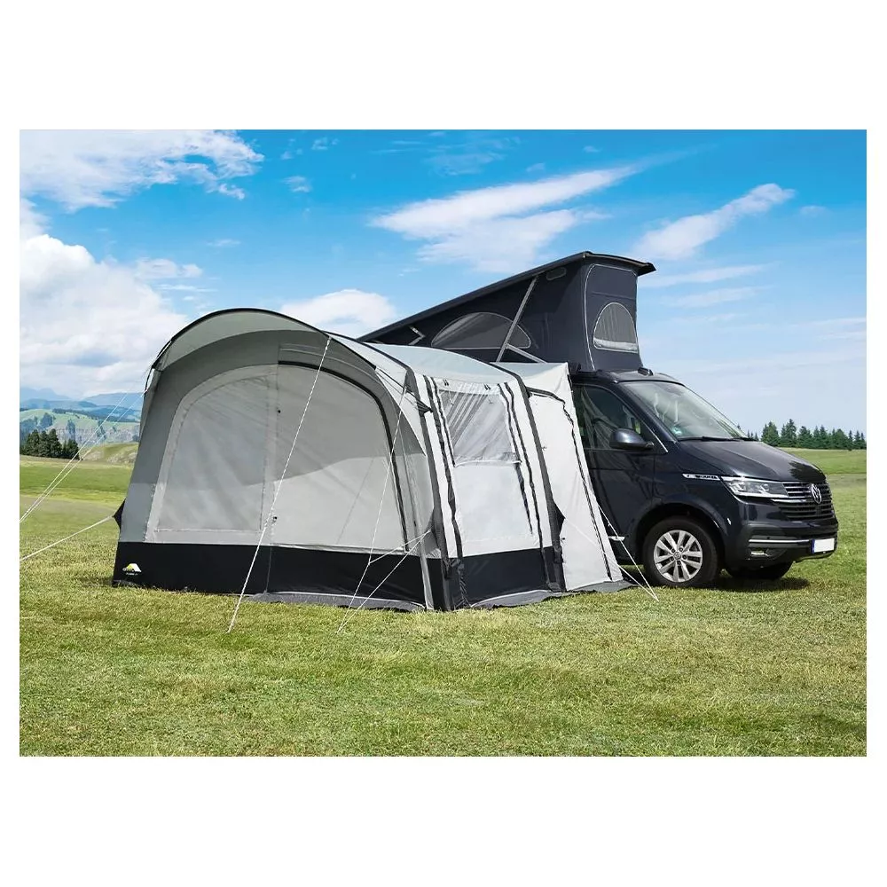 Unternimmst du am Wochenende gerne Kurztrips mit deinem Campingbus? Dann ist das freistehende Busvorzelt dwt Zelte Rodeo Air genau die richtige Wahl! Denn dieses aufblasbare Vorzelt passt mit einer Anschlusshöhe von 180-220 cm nicht nur ideal an deinen Bus, sondern ist auch mit vielen praktischen Details ausgestattet.