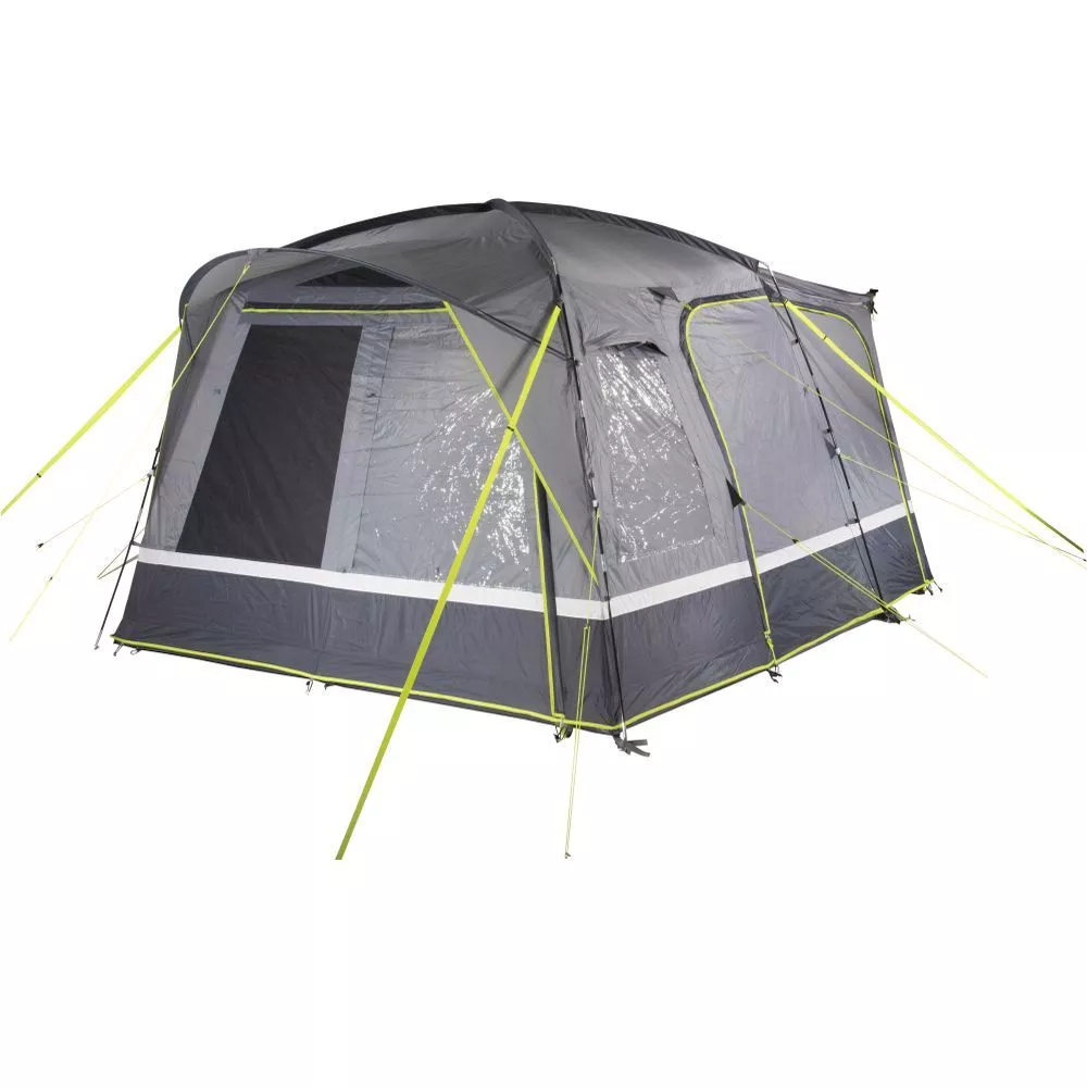 Das freistehende Buszelt High Peak Tour 2.0 aus hochwertigem 150D Polyester Material ist ein echter Hingucker. Die Dachkonstruktion und die Seitenwände bieten ein optimales Raumgefühl. Der fest mit dem Aussenzelt vernähte Boden verhindert das Eindringen von Schmutz, Nässe und Krabbeltieren. Die 2 Eingänge sorgen für einen flexiblen Zugang in das Zelt. Die Bodenwanne an den Eingängen kann mittels eines Reissverschlusses herunter geklappt werden und liegt flach auf dem Boden. Die Front kann komplett mittels einem Reissverschluss geöffnet werden.