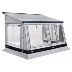 Der Schleusenkanal mit Hohlsaum ist inklusive Schleusen-Stange und angenähtem Doppelkeder-Streifen mit 5,8 / 7,2 mm. Die Anschlusshöhe beträgt 180 – 240 cm. Das Tour kann sowohl als Busvorzelt und als herkömmliches Übernachtungszelt verwendet werden – ein echtes Multitalent!