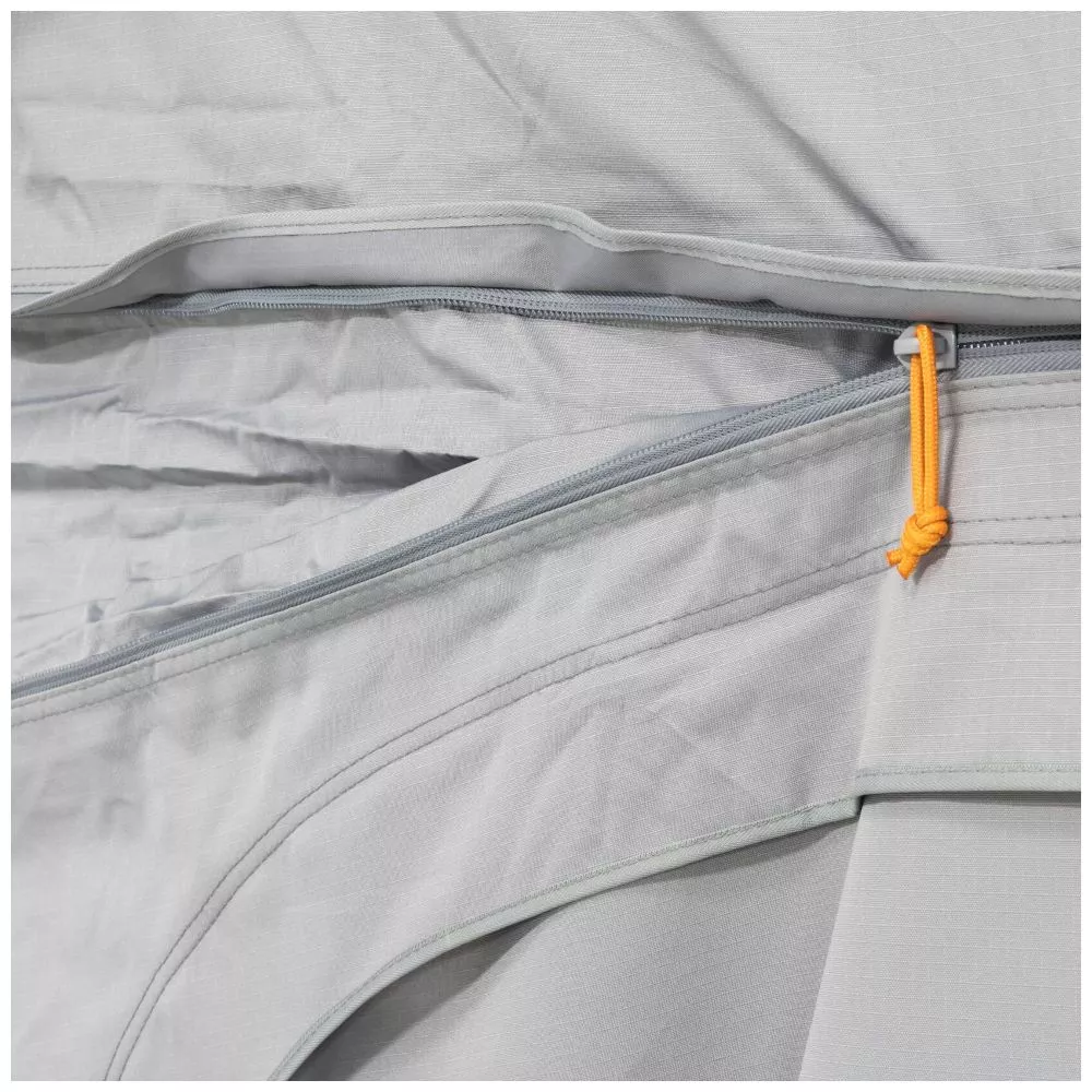 verstellbare Vorzeltschleuse – überschüssiges Material wird mit Gurtbändern festgemacht, für einen festeren Sitz
