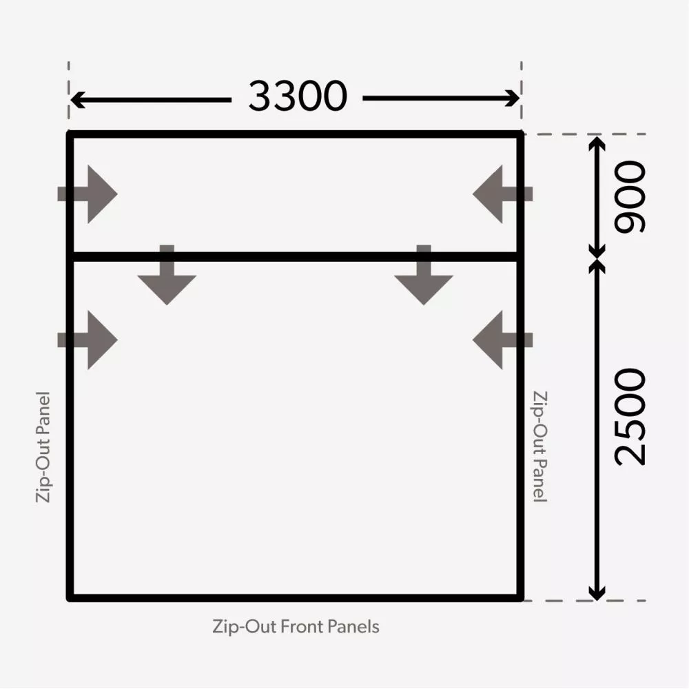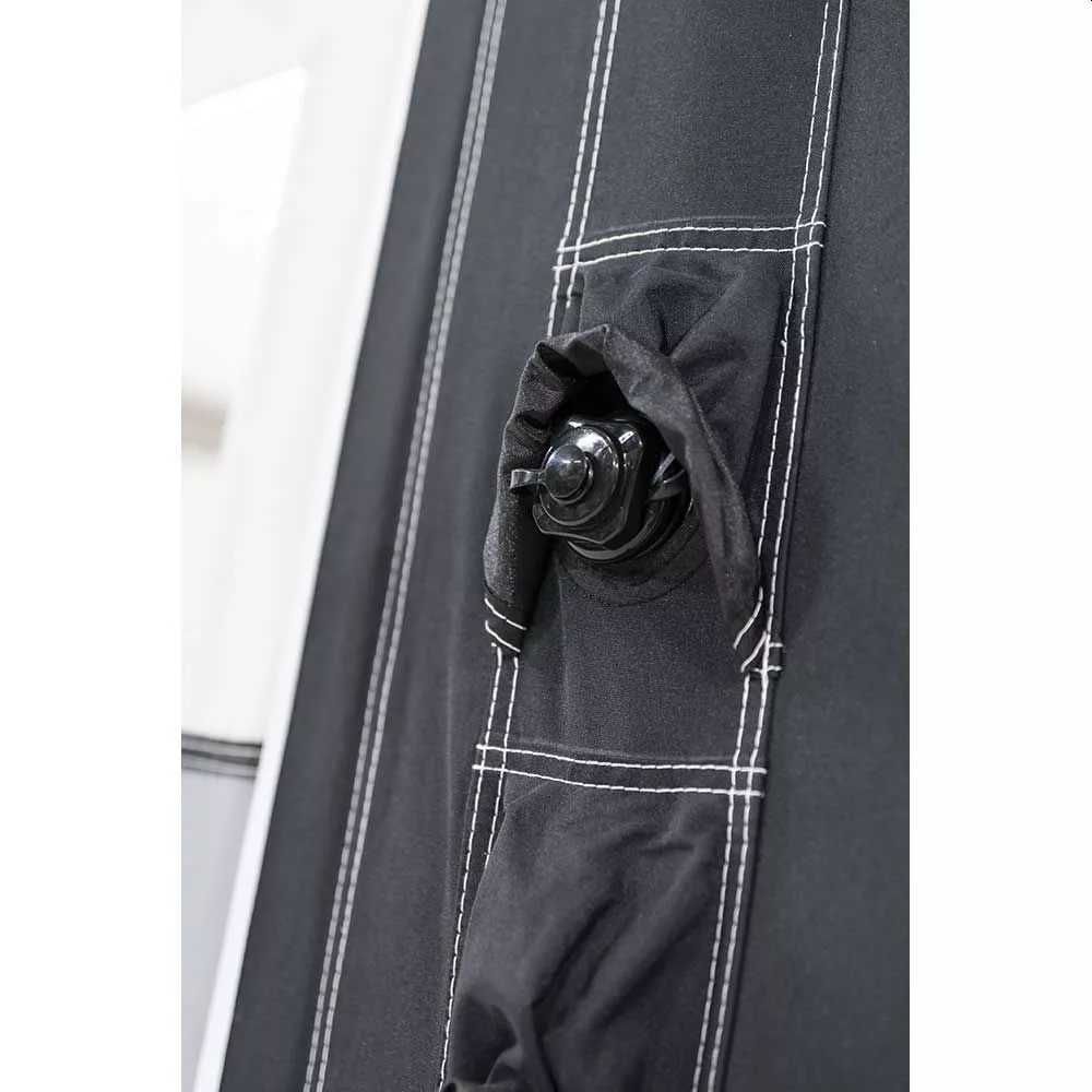 Dank der schönen Fenstern hast du immer einen wundervollen Ausblick nach draussen. Zudem kann so viel Tageslicht ins Zeltinnere gelangen. An heissen Tagen kannst du die Vorderwände zur Seite aufrollen. Das schafft ein angenehmes Raumklima und bietet viel frische Luft. Zudem ist es möglich die Seitenteile abzunehmen. Zippe hierzu die Wände einfach per Reissverschluss ab. Wenn dir das allerdings zu offen ist, gibt es auch die Möglichkeit die Fliegengitter in den Seitentüren und dem rechten Fenster zu nutzen. Auch der Zugang zum Fahrzeug ist geleistet. Die Rückwand hat zwei Türen, die mit Reissverschlüssen geöffnet werden können. Damit du nicht durch das ganze Vorzelt laufen musst, hat die Schleuse zum Fahrzeug auch Türen die flexibel per Reissverschluss geöffnet oder geschlossen werden können.