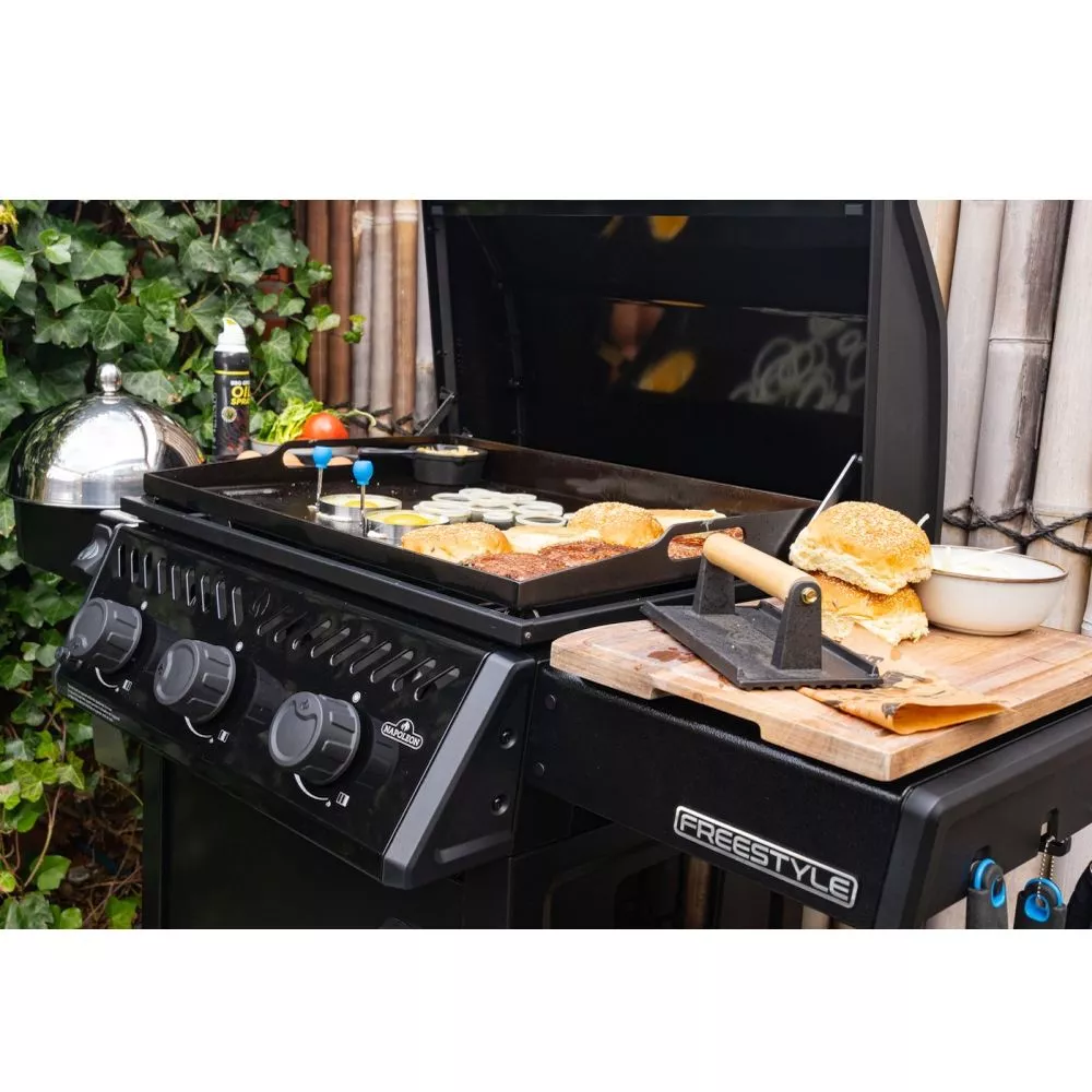 Der Napoleon Plancha Grill Freestyle 24 bringt mit maximaler Vielfalt noch mehr kulinarischen Möglichkeiten in die Grillküche! Die Grillstation bietet sämtlichen Komfort mit herausragender Leistung, ist aber anstelle von Grillrosten mit einer extrem massiven und vollflächigen Plancha aus Edelstahl ausgestattet!