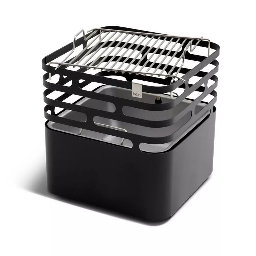 - Set bestehend aus schwarzem CUBE Feuerkorb und CUBE Grillrost