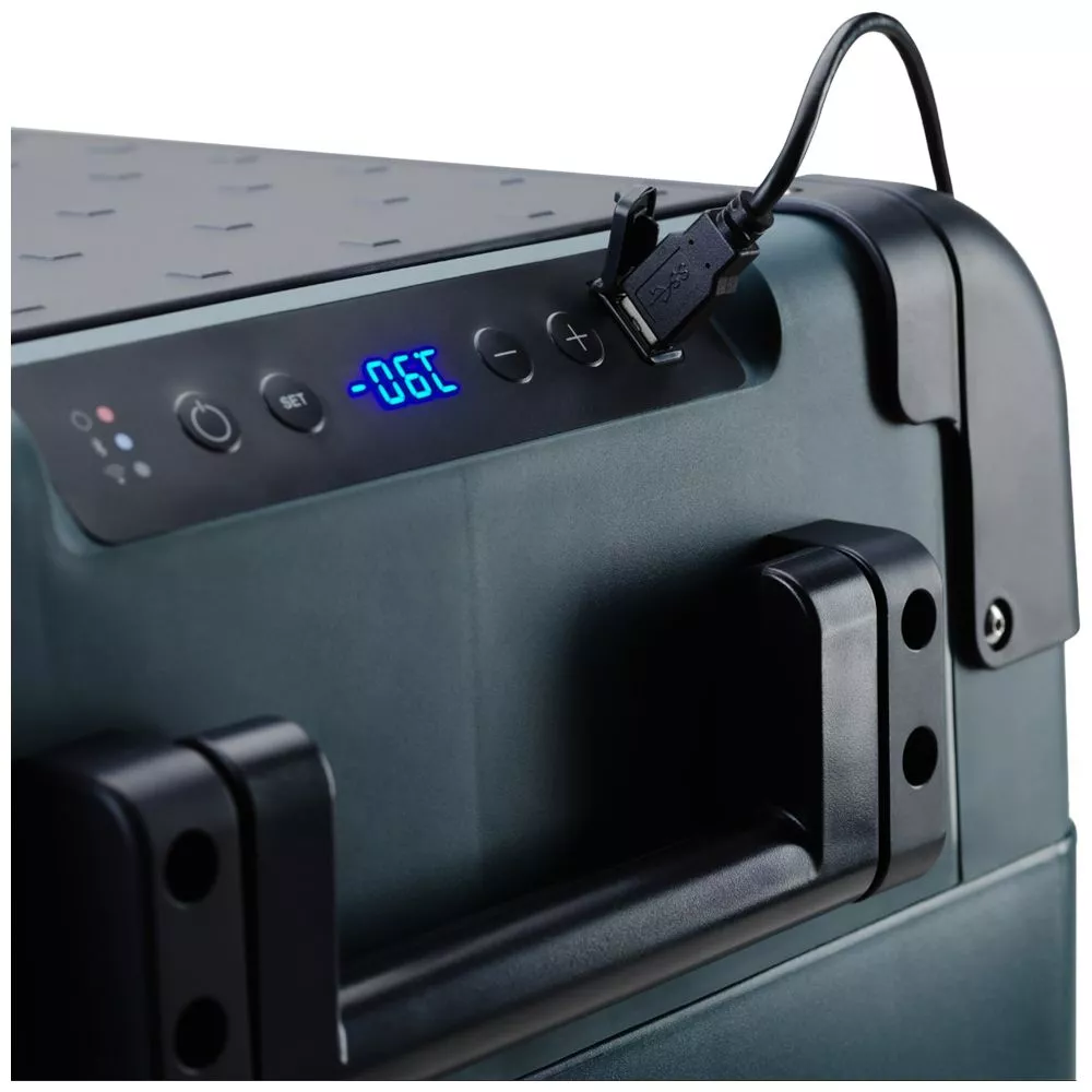 bietet Platz für bis zu 42 330 ml Dosen oder 4 1,5 Liter Flaschen Digitalanzeige zur bequemen Temperatureinstellung mit Display-Dimmfunktion und USB-Anschluss bequemes Steuern über Bluetooth oder WiFi per Smartphone über die mobile Cooling App ergonomische, klappbare Griffe unterteilbarer Innenraum mit herausnehmbarem Korb für optimale Organisation integriertes LED-Innenlicht für bessere Sichtbarkeit, auch in dunkler Umgebung intuitive Verriegelung ist bequem mit einer Hand zu öffnen mit funktionaler Ablassschraube für eine einfache Reinigung 5 Volt, 2 Ampere USB-Anschluss niedriger Stromverbrauch dank leistungsstarkem und effizientem Kompressor mit Drehzahlregelung stabiles Design mit verstärkten Ecken, Edelstahlscharnieren und einem stabilen abnehmbaren Deckel 3-stufiger Batterieschutz schützt die Fahrzeugbatterie vor zu starker Entladung M6 Gewindeeinsätze im Fuss für die Montage inklusive 2 Meter Stromkabel |