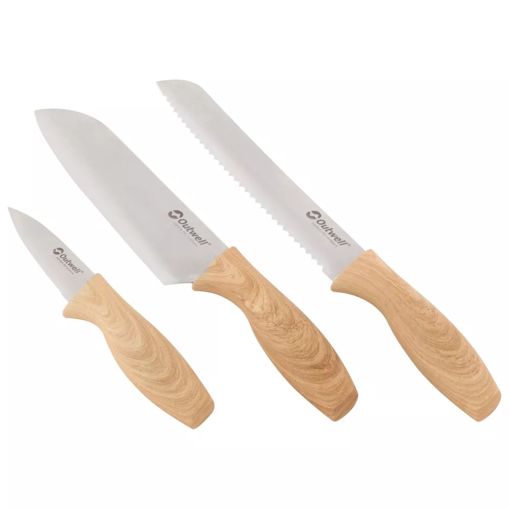 Das Outwell Matson Messerset ist ein Set aus drei Messern mit Antihaftbeschichtung, rutschfesten Griffen und Schutzhüllen. Die Messer eignen sich ideal zum Zubereiten verschiedenster Speisen. Enthalten ist ein Gemüsemesser (8,5 cm), ein Brotmesser (19,5 cm) und ein Santokumesser (16,5 cm).