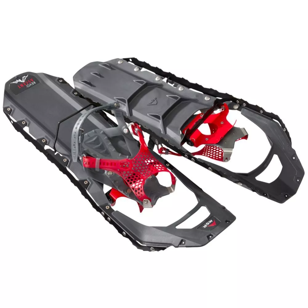 Die Schneeschuhe MSR Revo Ascent M25 sind für Winterfans, die gerne steile und raue Touren erleben möchten. Mit dem robusten ExoTract Deck hast du durch die aggressiven Zähne im Aussenrahmen den bestmöglichen Halt während deiner Schneeschuhwanderung. Du bist jetzt mit der hochwertigen Paragon Bindung ausgestattet, die eine ultimative Trittsicherheit bietet. Diese besonders passgenaue Bindung hat keine Druckpunkte und ist dank Netzriemen besonders bequem und zuverlässig in schwierigem Gelände. Die MSR Herren Modelle sind länger und breiter als die Damenausführungen. Das erklimmen der höchsten Gebirge wird dir nicht schwer fallen. Wenn du deine Schneeschuhe nicht benötigst, vereinfacht dir die flexible Bindung einen platzsparenden Transport. Besonders ansprechend für Bergsteiger die gerne im Winter wandern. Damit du auch in Schneestürmen und Schneegestöber sicher ankommst, sind am Schneeschuh DTX-Steigeisen vorhanden. Kommt es zu steileren Wegen, klappst du einfach die Ergo Televator Steighilfe mit deinem Schneeschuhstock hoch. So behältst du dank der Fersenerhöhung den selben Komfort. Bei festem oder tiefem Pulverschnee nutzt du einfach die optional erhältlichen Verlängerungselemente. Die MSR Tails werden in wenigen Sekunden, ohne Ausziehen angeklippt.