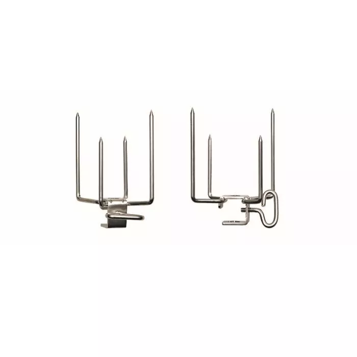 passen für viereckige oder sechseckige Grillspiesse - 4-zackige Fleischklammern zur Halterung von grossen Fleischstücken am Drehspiess