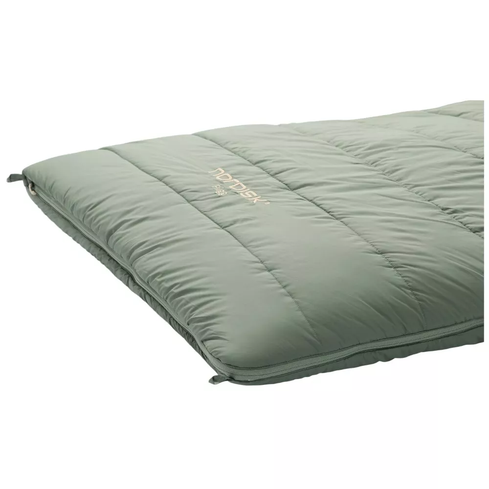 Gefertigt aus strapazierfähigem Ripstop-Gewebe und ausgestattet mit einem weichen Innenfutter, bietet der Frigg von Nordisk sowohl Langlebigkeit als auch Kuscheligkeit. Die supersofte, schnell trocknende Synthetikfüllung hält dich nicht nur warm, sondern trocknet auch schnell, was ihn perfekt für wechselhafte Wetterbedingungen macht. Und wenn du deine Schlaf-Temperatur regulieren musst, gibt dir der 2-Wege-Reissverschluss mit Einklemmschutz die volle Kontrolle.