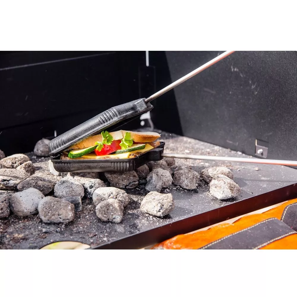 Das Sandwicheisen von Petromax ist perfekt für leckere Toasts, Bagels oder Teigtaschen. Ob als Snack am Lagerfeuer oder als tolle Ergänzung deines Grillmenüs: Sandwiches werden jetzt in den gusseisernen Formen in der Glut des Lagerfeuers oder auf dem Grill getoastet. Weil die Toastpfannen des Sandwicheisens die Hitze perfekt speichern, wird das Brot knusprig geröstet und die Füllung lecker saftig.