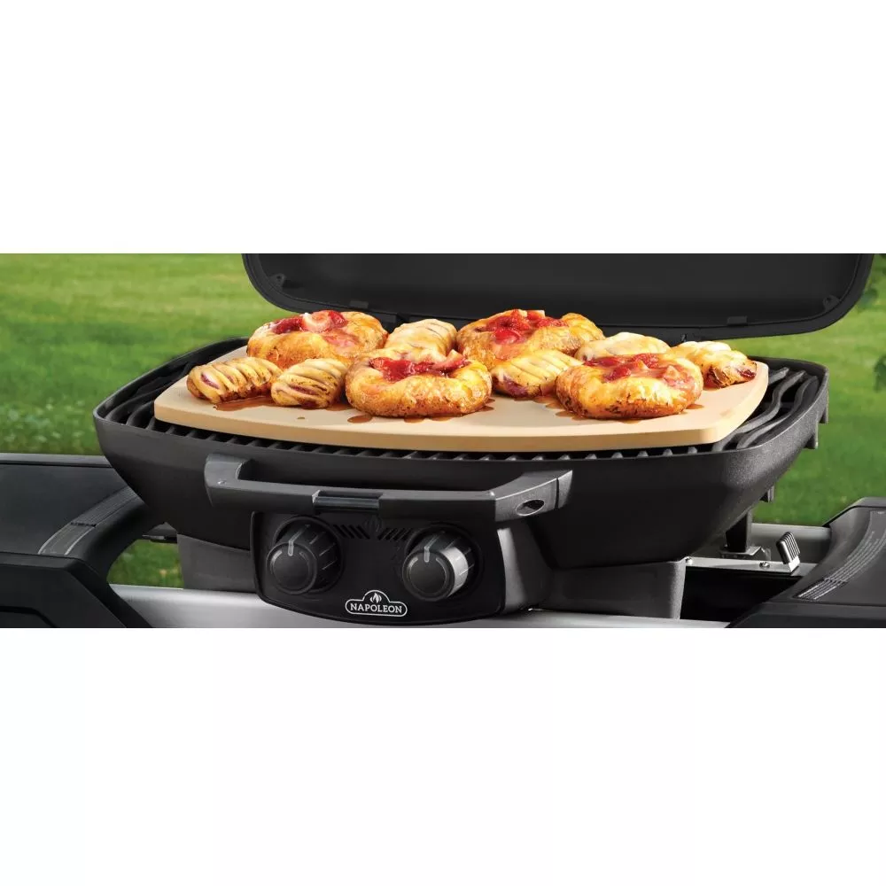 Der Napoleon Pizzastein mit spezieller Form passend für Grillmodelle der TravelQ-Serie, besteht aus Kordierit und sorgt für einen knusprigen Pizzaboden.