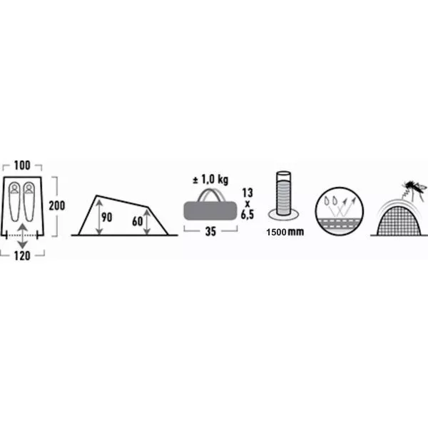 Das Zelt High Peak Minilite ist ein kleines, schnittiges Giebeldachzelt mit attraktivem signalroten Gestänge für 1 bis 2 Personen und leichte Sommertouren. Das Gewicht von nur 1.000 Gramm und das Packmass sind die Hauptmerkmale. Dauerbelüftung. Schneller Aufbau. Das Zelt passt in jeden Rucksack und eignet sich auch als Notzelt.